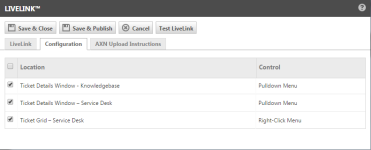 NOTA El LiveLink debe ser publicado para un usuario para que este lo pueda ver en la página Ticket.