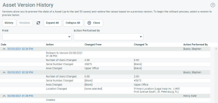 NOTA El seguimiento de versiones comenzará con el lanzamiento de Autotask 2021.1. Las modificaciones de un elemento anteriores a la publicación se registrarán en la página de historial, pero no en la página de historial de versiones.