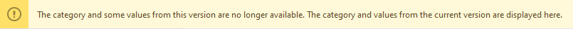 Si está intentando volver a una versión anterior, es posible que ciertos campos, o valores específicos para ciertos campos o categorías, ya no estén disponibles, porque han sido desactivados o eliminados.