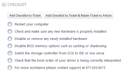 NOTA Si el ticket ya contiene una lista de comprobación y agregar la lista de comprobación del elemento del contenido derivaría en más de 40 elementos de listas de comprobación, no podrá agregar la lista de comprobación.