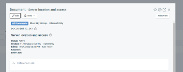 Pone el elemento en modo de edición. Este botón aparece solamente para usuarios con privilegios de edición. Consulte Configuración de seguridad de la base de conocimientos y los documentos. |