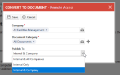 Esta opción está disponible si está habilitada la Gestión de documentos y si tiene permiso para añadir un documento. Cuando se selecciona, se abre el cuadro de diálogo Convertir en documento.