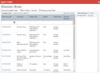 - Para mover un ticket dentro o fuera del panel Elementos Seleccionados, haga doble clic en cualquier lugar de la fila, excepto en el número de ticket. Para seleccionar múltiples elementos, use Ctrl y haga clic.