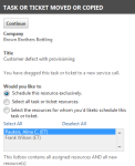Este mensaje aparece cuando usted arrastra una tarea o ticket desde una llamada de servicio a otra.