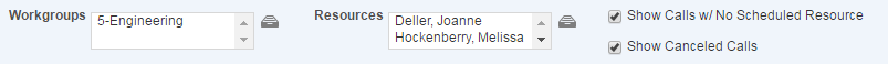 junto a los campos de texto Grupos de trabajo o Recursos para abrir el selector de datos. - Haga sus selecciones en el selector de datos y haga clic en Guardar selecciones.