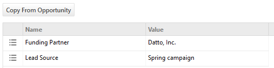 - Haga clic en Copiar desde oportunidad. Se abrirá el Asistente de copia de atributos definidos por el usuario.
