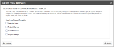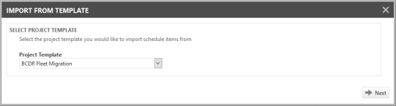 | Plantilla del proyecto | El asistente Importar desde plantilla comienza con la selección de la plantilla. Seleccione una plantilla desde la lista de todas las plantillas activas. |
