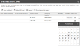 Si usted no añadió una fecha de llegada estimada cuando agregó el elemento a la orden de compra, tendrá una segunda oportunidad al enviar la orden de compra.
