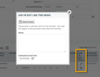 Para añadir una fecha de llegada estimada a un elemento de orden de compra, haga clic en el ícono Memorando