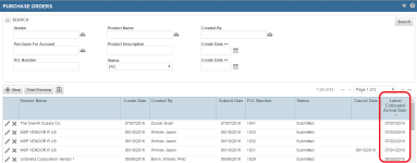 - Esta columna mostrará la fecha de llegada más reciente de todos los elementos que fueron ingresados en la orden de compra.
