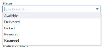 Para elementos almacenados no serializados, el estado está siempre en blanco. NOTA Los elementos que se han quitado no pueden reservarse ni escogerse. |