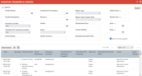 La página Transferencias y actualizaciones de inventario es una página de sólo lectura que realiza un seguimiento de los movimientos y actualizaciones de los artículos almacenados en su instancia de Autotask. El seguimiento comienza cuando se crea el producto de inventario y los elementos almacenados, y sigue al elemento almacenado durante todo su ciclo de vida. Puede seguir cómo un elemento almacenado en serie entra y sale de su inventario buscando el número de serie.