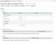 Campo Descripción Encabezados de habilidades, certificados y capacitación y grados Haga clic en + para ampliar los encabezados de habilidades, certificados y capacitación, y grados y así mostrar las listas. Haga clic en - para contraer las secciones, según sea necesario. Categorías de habilidades, categorías de certificados y capacitación, categorías de grado Amplíe las categorías para revisar las listas de Habilidades, Certificados y Capacitación y Grados. Nombre de habilidad1, Nombre de certificado y capacitación1, Nombre de grado1 Seleccione los que se apliquen a este recurso.
