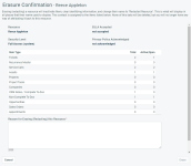 Cuando se selecciona la opción Borrar (Ocultar) en la página Editar Recurso o en la página Editar Contacto, se abre la página de Confirmación de Borrado. La página Confirmación de borrado: