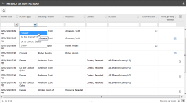 | Tipo de acción | El tipo de acción de privacidad. Las opciones son: • Consentir - Rastrea el consentimiento a la Política de privacidad. • No contactar (Ventas): Rastrea cuando está seleccionada la casilla "El contacto no acepta solicitudes de ventas". • Se puede contactar (Ventas): Rastrea cuando no está seleccionada la casilla "El contacto no acepta solicitudes de ventas". • Borrado - Rastrea el ocultamiento de un contacto o recurso. El menú desplegable de filtros muestra una lista con las opciones disponibles, más una opción en blanco. |
