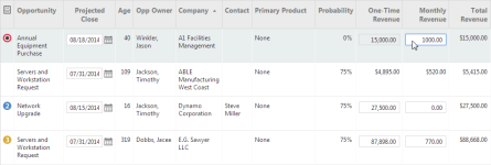 IMPORTANTE Todos los usuarios pueden editar los campos Ingresos y Avanzados en la tabla para oportunidades para las que tengan permisos Míos y Todo.