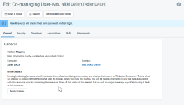 NAVEGACIÓN Además de las rutas de laSeguridad y navegación sección, también aquí: Menú de navegación de la izquierda > CRM > Buscar > Contactos > haga clic en Buscar > haga clic en el nombre de un contacto > pestañas accesorias > Usuario co-administrador > Gestionar configuración de recursos.