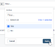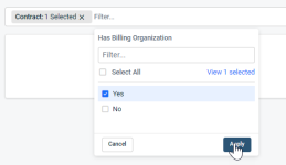 - Cuando haya definido todos los filtros, haga clic en Aplicar a la derecha de la barra de filtros. Los servicios que coinciden con todos los filtros aplicados aparecen en la parrilla de resultados, cada instancia del servicio en una línea separada.