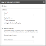 - Desde la lista desplegable Nuevo, seleccione Código de tiempo interno. Para editar un código de tiempo interno existente, seleccione Editar en el menú contextual.