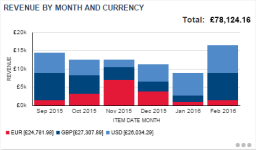 Además, usted podrá agrupar información de widgets de acuerdo a la divisa del cliente de una empresa determinada.