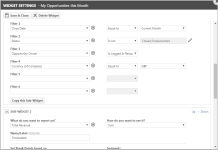 Si la opción Multidivisa está activada, se añadirá un filtro de Divisa (de Organización) a todos los widgets que tengan Organización disponible como filtro.