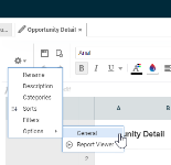 | Reporte vinculado | Vincule otro reporte a este reporte. Un ícono de vínculo en la celda indica que la celda ya está vinculada a otro reporte. Consulte Vincular un reporte a otro reporte. |