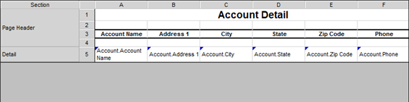 En el siguiente ejemplo, fueron creados dos reportes: El primero, Detalles de la organización, contiene organizaciones completas con detalles que incluyen el nombre de la organización, la dirección y el teléfono.