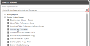 - Seleccione el campo de datos compartidos en el segundo reporte y seleccione el ícono Reporte vinculado
