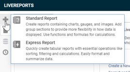 Para crear un nuevo reporte personalizado, haga clic en el signo + de la esquina superior izquierda y seleccione Reporte estándar o Reporte rápido.![]()
