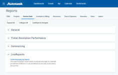 SUGERENCIA Una de las carpetas contiene reportes de sistema y LiveReports pregenerados brindados por Autotask PSA.