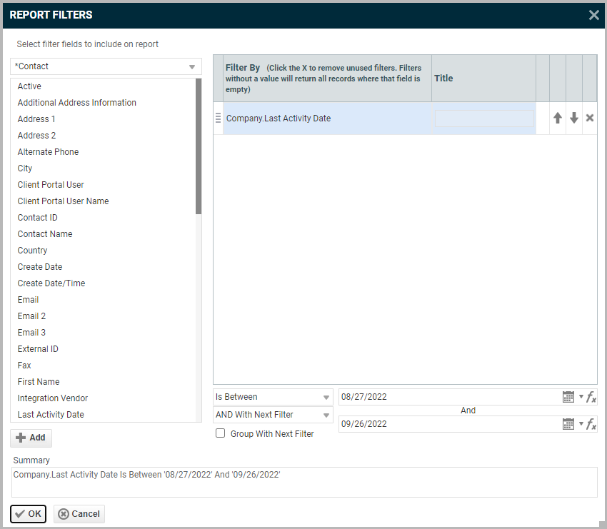 - Cambie los filtros si es necesario y, luego, haga clic en Aceptar para ejecutar el reporte.