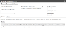 - Haga clic en Guardar. Usted debe guardar un nuevo SLA antes de agregar objetivos.
