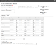 - Usted puede configurar horas personalizadas para el SLA en la pestaña Horas de SLA. La pestaña Horas le permite especificar horario laboral, horario laboral ampliado, manejo de feriados y una zona horaria para el SLA.