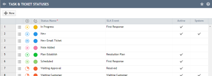 NAVEGACIÓN Menú de navegación de la izquierda > Admin > Categorías de administración > Características y configuraciones > Atención al cliente (Tickets) > Estados de tareas y tickets