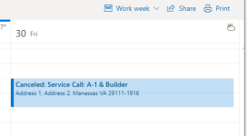 NOTA Las llamadas de servicio canceladas se quitan de LiveMobile y Outlook, pero si usted usa una integración de Exchange, la llamada de servicio permanecerá en el programa, pero con le antecederá la palabra "Cancelada".![]()