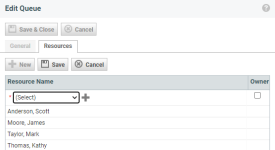 NOTA Los recursos pueden asignarse a varias colas a la vez desde su registro de recurso. Para más información, consulte Complete la pestaña Asociaciones.