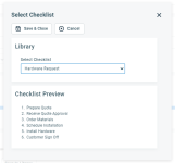 - Haga clic en Guardar y cerrar para agregar la lista de comprobación a su ticket, tarea u oportunidad.