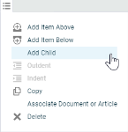 Sólo disponible para elementos a nivel principal. Al hacer clic en esta opción, el elemento se moverá al nivel secundario. |