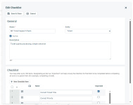 | Importante | Si el elemento es importante, seleccione esta casilla. En el modo Vista, aparecerá un signo de exclamación después del elemento de la lista de comprobación. |