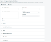 NOTA Las plantillas de formularios para las entidades que admiten texto enriquecido en los campos Descripción, Notas de resumen y Notas internas también admiten texto enriquecido en las plantillas de formularios. Consulte El editor de texto enriquecido.