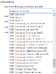 Estos no le permitirían crear un conjunto de condiciones tales como: Prioridad es igual a Crítica O Territorio es igual a Región del Maule, en los que están en juego dos atributos aparte. En reglas del flujo de trabajo de Autotask, tales condiciones pueden solamente vincularse con el operador Y.
