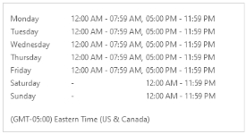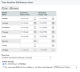 Para todas las otras entidades del flujo de trabajo (proyectos, tarea, contratos, etc.), el componente de tiempo se basa solamente en las horas laborales de la ubicación predeterminada.