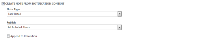 - Para reglas del flujo de trabajo de tickets, usted puede también seleccionar la casilla Adjuntar a resolución para añadir la nota a la resolución del ticket.
