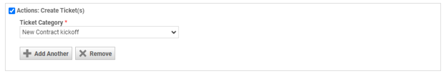 - Si desea que la regla de flujo de trabajo cree un ticket adicional, seleccione Añadir otro. Puede tener hasta tres tickets creados por una regla de flujo de trabajo.
