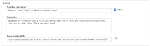 | URL de Documentación | Introduzca un enlace a un documento con texto o diagramas que expliquen cómo funciona esta regla de flujo de trabajo en el proceso de su organización local. Haga clic en el ícono |