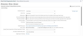 En la página Detalle de la Organización del Portal de Clientes, puede personalizar la configuración del Portal de Clientes para una organización individual. Para abrir la página, use la(s) ruta(s) de acceso en la sección Seguridad y navegación más arriba.
