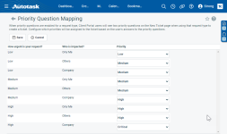 NAVEGACIÓN > Admin. > Categorías de administración > Extensiones e integraciones > Portal del cliente y Taskfire > Asignación de preguntas de prioridad