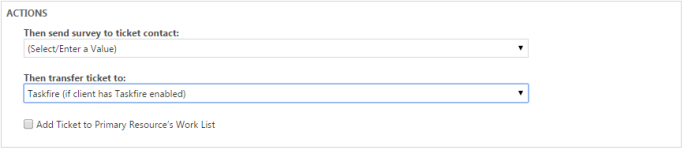 - En el área Acciones, seleccione Luego transferir ticket a: Taskfire.