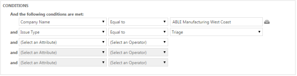 - En el área Condiciones, seleccione el cliente al que se aplicará la regla de flujo de trabajo y cualquier otra condición que desee que se cumpla antes de iniciar la regla de flujo de trabajo.