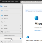 - Despliegue el menú de la barra lateral Identidad y seleccione Registros de aplicaciones.